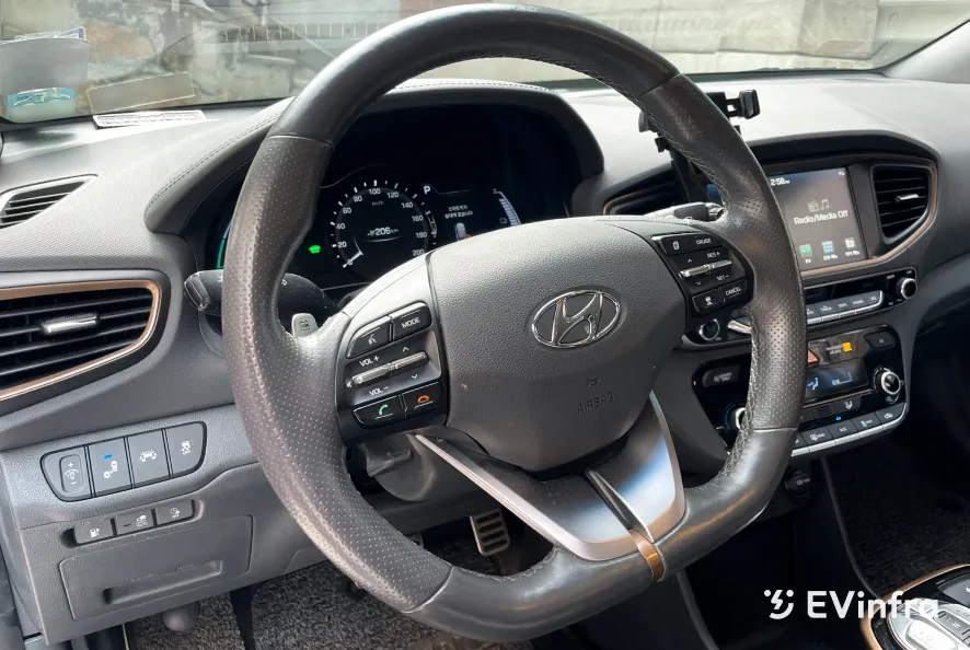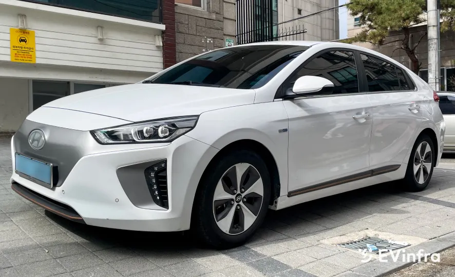 아이오닉 일렉트릭이에요. DC콤보가 적용된 첫 모델입니다. 그 전까지는 충전 단자가 차데모였는데, 그게 불편하다는 말이 있어서 망설이다 이 모델이 나온다기에 구입했어요. 김해에 보조금이 많이 나왔다고 했잖아요. 그 당시에 2,100만 원인가, 꽤 많이 받았어요. 아낀 비용으로 옵션을 더 넣자, 해서 선루프만 없는 풀 옵션입니다.
