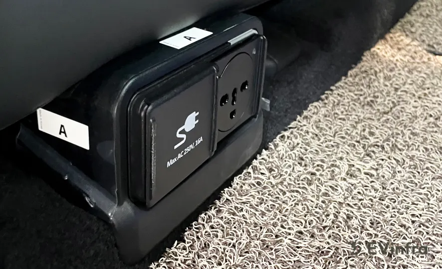 저는 굳이 외부는 잘 사용하지 않고요. 내부는 조수석 뒷좌석 가운데 부분에 플러그가 있어요. 가장 활용도 좋은 장비는 커피 포트, 드라이기. 휴대폰 충전할 때도 쓰고요. 일행한테 쓰라고 공유하기도 해요. 아, 선풍기도 굉장히 쓸만 해요. 그렇게 써도 배터리가 생각만큼 닳지 않아요.