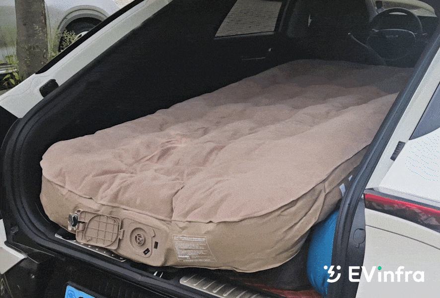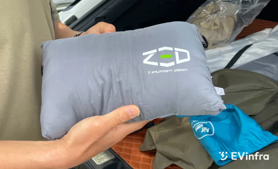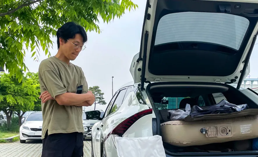 일단 최고의 장비는 전기차고요.(웃음) 그리고 자충매트. 꼭 필요하다 생각해요. 15만 원 정도 돈 들여서 완전히 평탄화시키는 분들이 계시는데 저는 좀 무던한 편이라 자충매트 깔고, 머리를 운전석 쪽으로 두고 자면 불편하지 않더라고요.