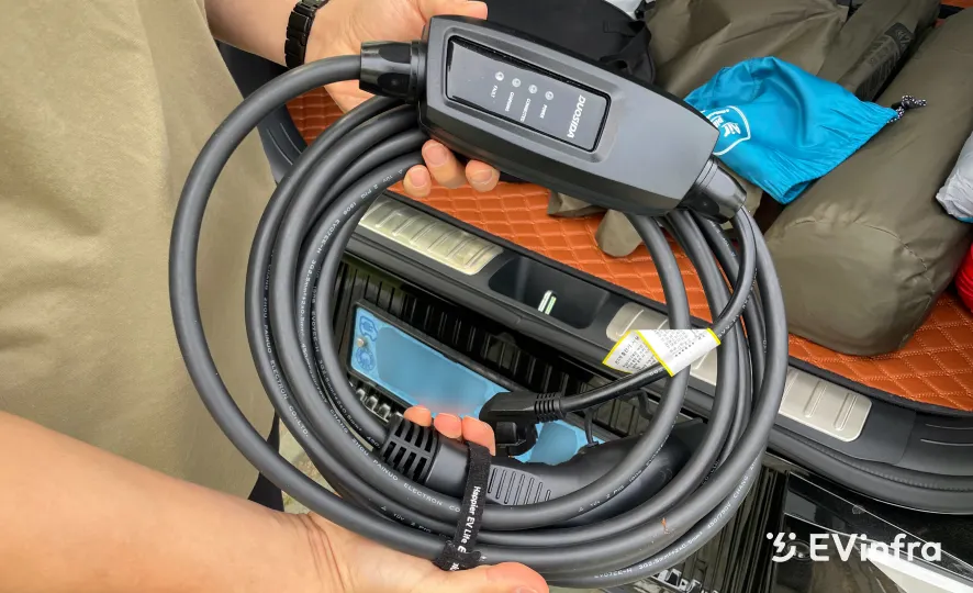 저는 80% 세팅 맞춰서 출발해요. 꼭 100% 다 채워서 갈 필요 없어요. 저는 충전 계획을 철저하게 세우는 편이라 캠핑 가기 전에 캠핑장 근방 5km 내에 있는 충전소를 다 찾아봐요. 이때 EV Infra를 가장 많이 사용하죠. 리뷰는 참고하고, 충전속도랑 요금을 가장 중점적으로 보는데 도움이 많이 돼요. 아무튼 80% 채워서 출발하고, 도착 전에 미리 봐놓은 충전소 들러서 충전하면 딱 맞아요. 캠핑하면서 V2L 쓰고, 전기 필요하신 분한테 나눠 드리고. 그래도 부족하지 않아요.