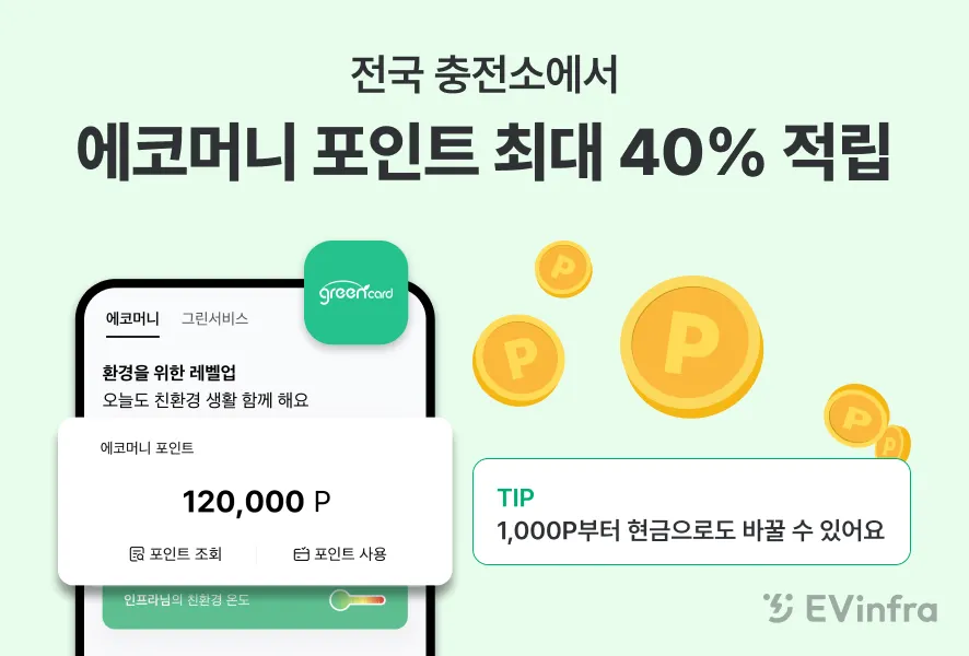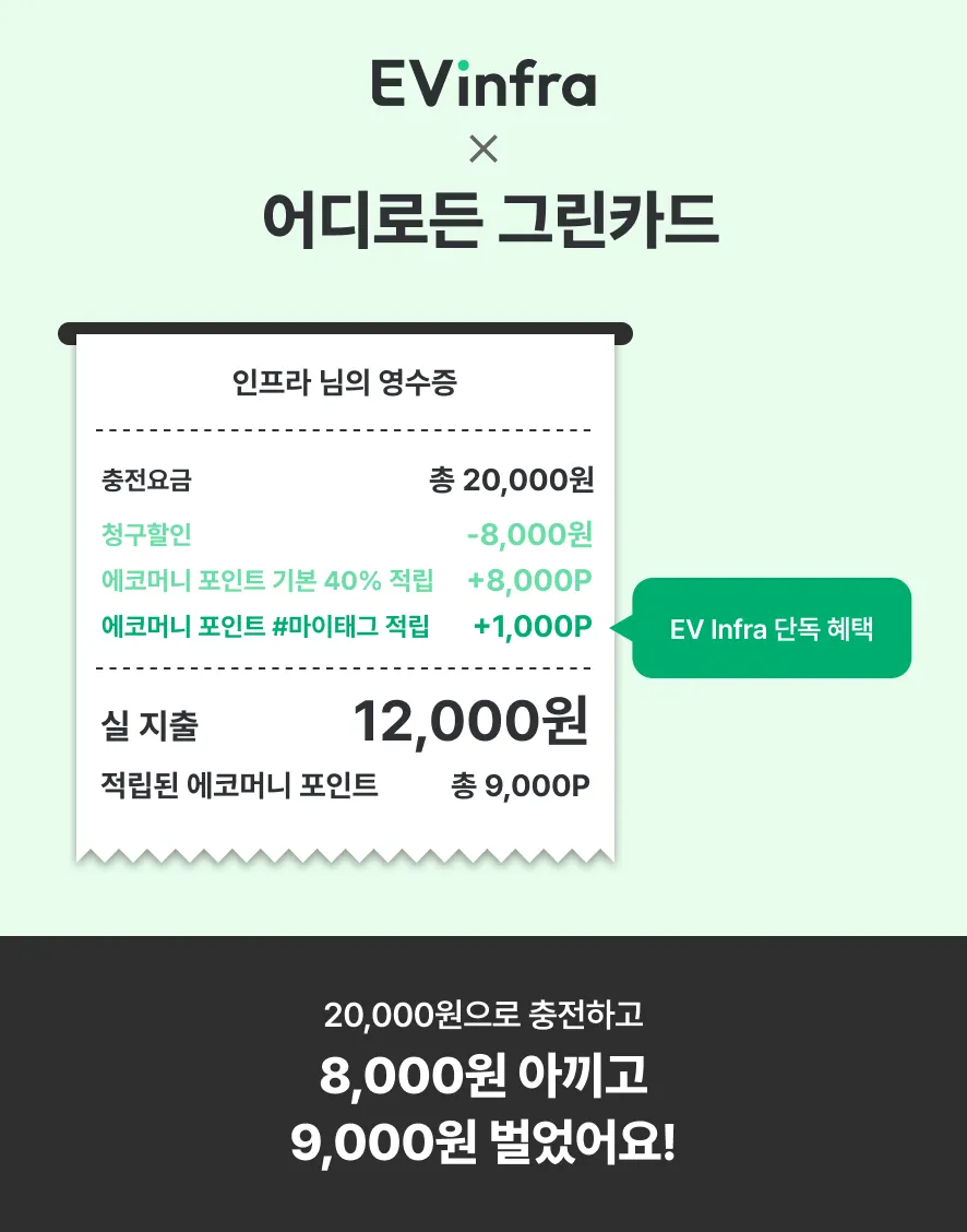 EV Infra #마이태그를 적용하면 에코머니 포인트를 5% 추가 적립해드리고 있습니다.