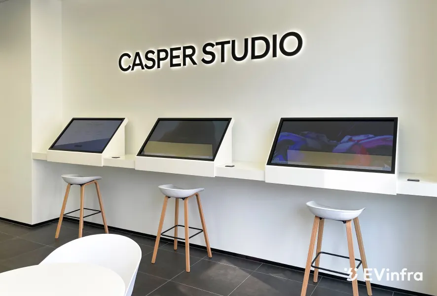 캐스퍼 일렉트릭을 직접 만나기 위해 EV Infra가 향한 곳은 바로 <캐스퍼 스튜디오 송파>! 캐스퍼 차량만 전시되어 있는, 오직 캐스퍼와 그 고객을 위한 공간이랍니다. 이 곳은 직원이 없는 ‘무인 전시장’으로 운영되고 있어요. 특이하죠?