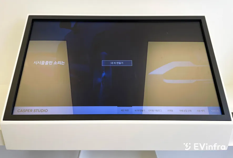 캐스퍼 전시장, 모의견적이나 카탈로그 등을 확인할 수 있는 캐스퍼 커넥터 존, 비대면 상담을 위한 프라이빗 부스로 구성되어 있는데요. 이렇게 봐선 감이 잘 안 오시죠? 지금부터 EV Infra와 함께 돌아봐요!