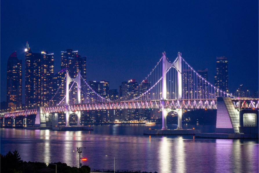 낮의 뜨거운 열기 속에 즐기는 물놀이와 레저만큼 밤바다도 그만의 매력이 있는데요, 광안리 해수욕장은 특히 광안대교의 야경이 멋지기로 유명하죠.