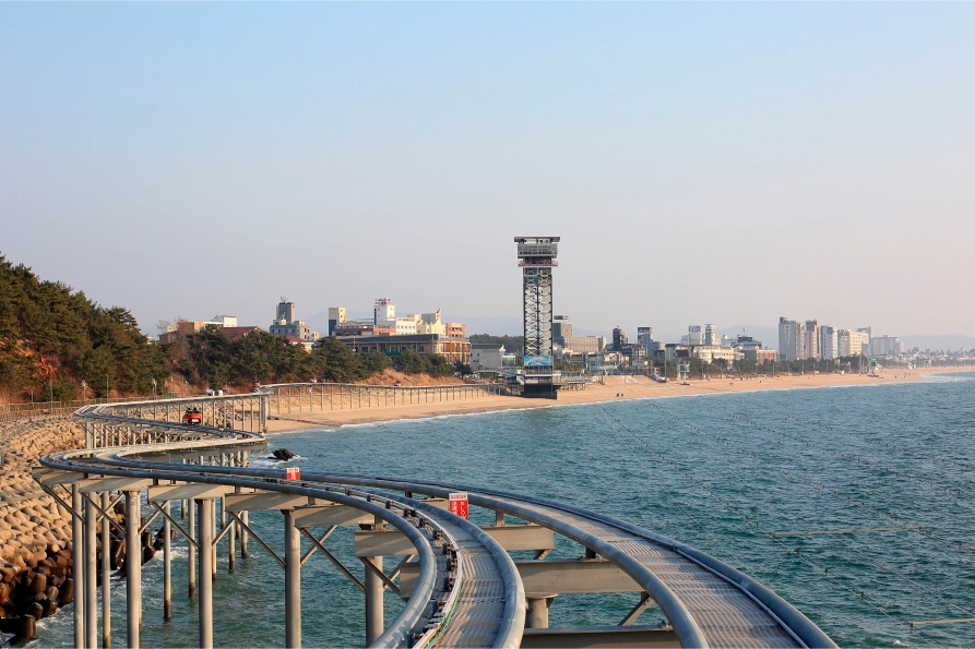 패각분으로 이루어진 부드러운 백사장이 특징인 대천해수욕장은 대천항까지 달리는 스카이 바이크, 갯벌 체험장 등을 운영하고 있습니다. 레저를 즐기시는 가족분들에게 안성맞춤이지 않을까 합니다.